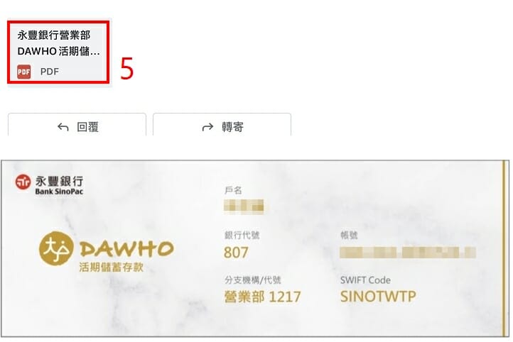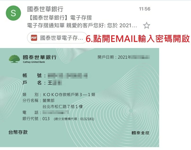 5. 至綁定信箱點開附件輸入身分證字號可開啟數位存摺封面